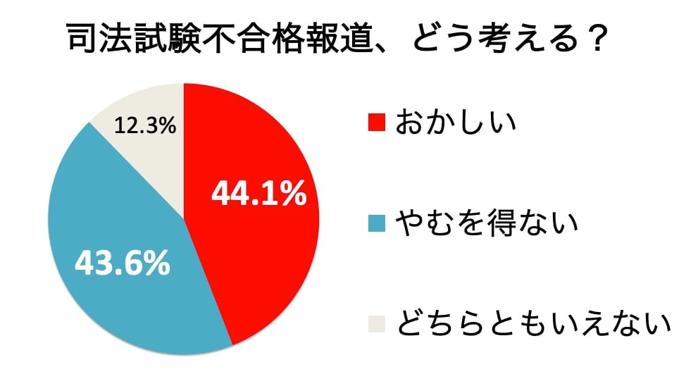 小室圭さんの司法試験不合格が大々的に報じられたことについて、どう考えているかを尋ねたところ、「おかしい」が44.1%、「やむを得ない」が43.6%と拮抗しました。「どちらともいえない」とした人も12.3%いました。